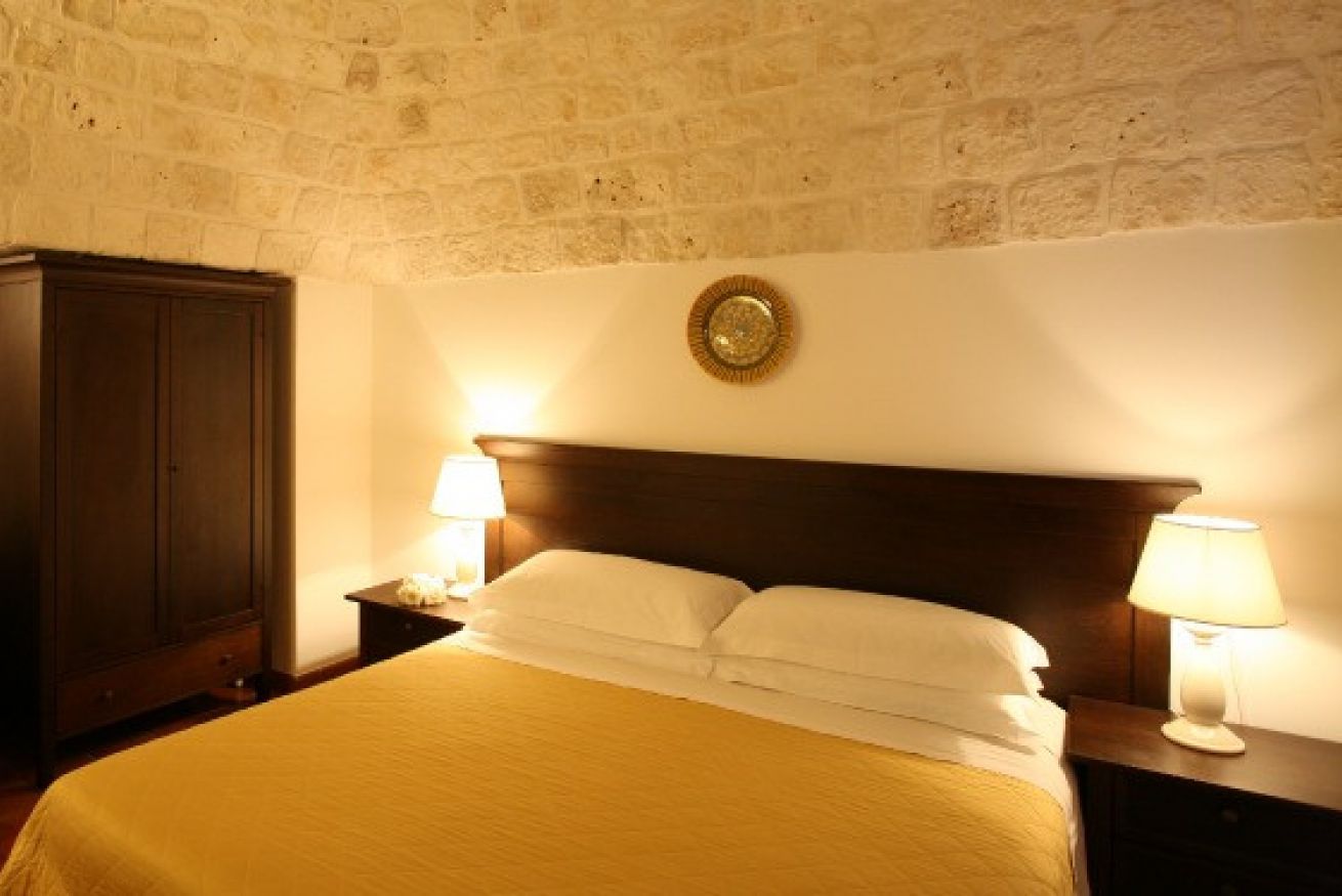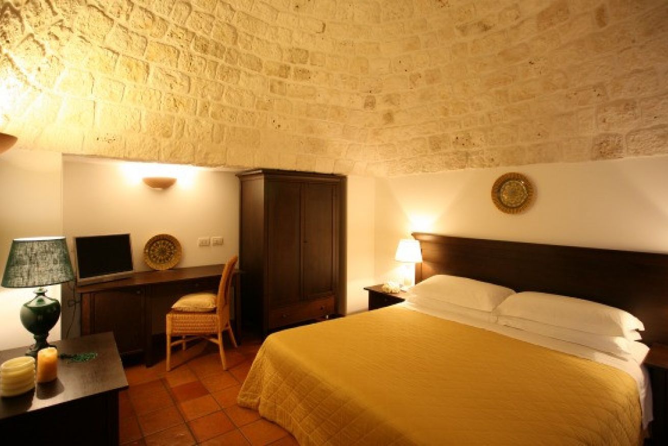 La camera in Trullo è costituita da una singola camera da letto matrimoniale, è collocata alle spalle dell’area piscina e ha un piccolo terrazzo che si affaccia sulla nostra campagna. Esso dispone di bagno alla francese (non ha il bidet e la doccia è filo pavimento).