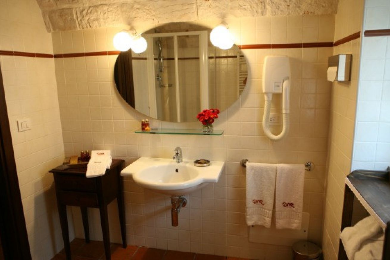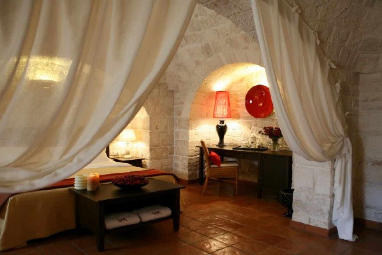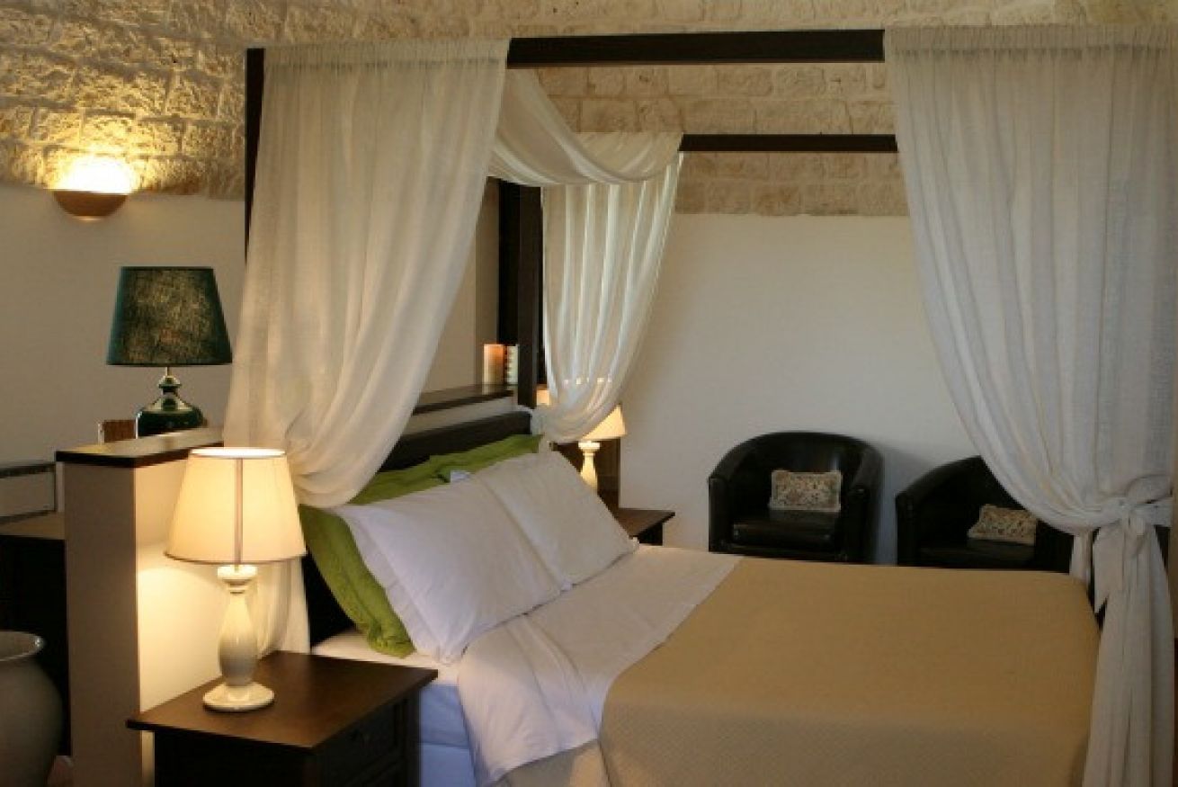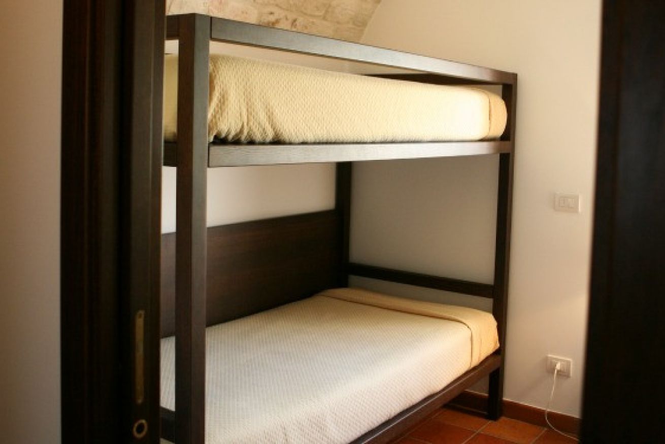 La Family room in Trullo è composta da una camera da letto matrimoniale, un angolo lettura, una piccola camera con due letti o con letto a castello e bagno privato.